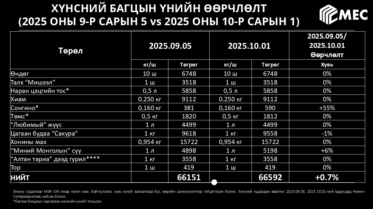 Хүнсний барометр: 2025 оны 10-р сар